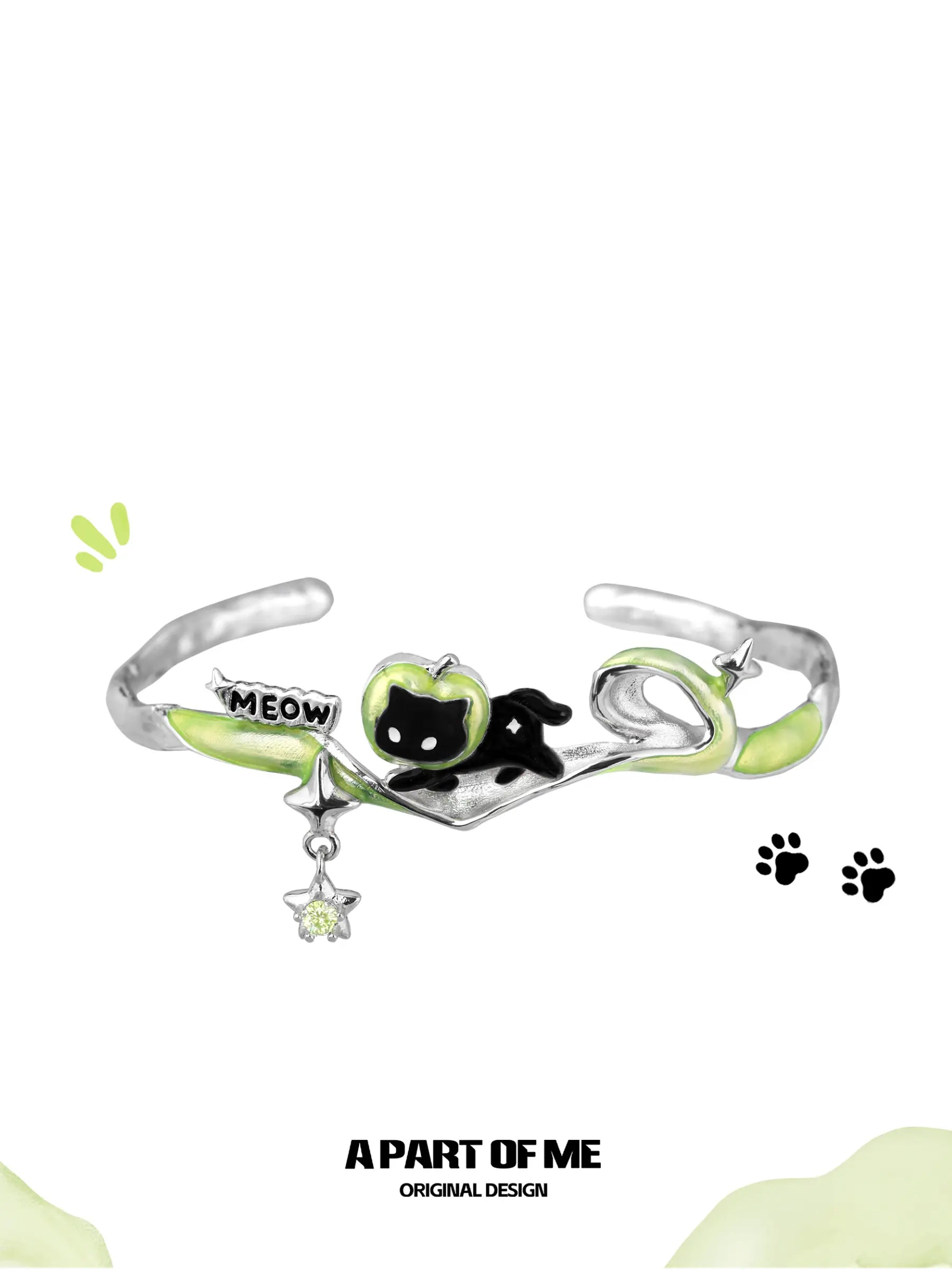 Summer Fruity Black Cat Green Apple Adjustable-Opening Bangle Bracelet™
