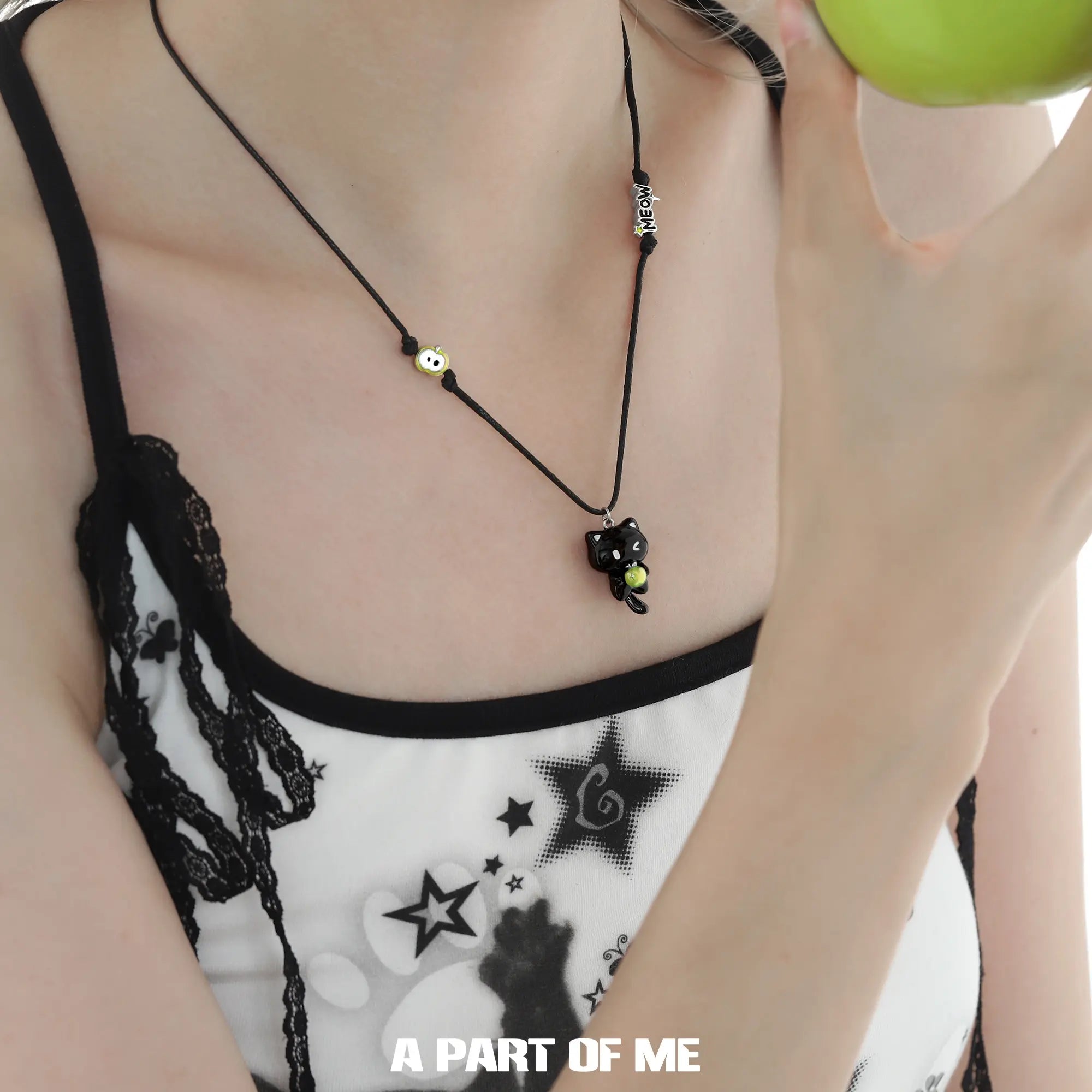 Meow 18K Platinum Plated Apple Cat Pendant Black Cord Necklace™