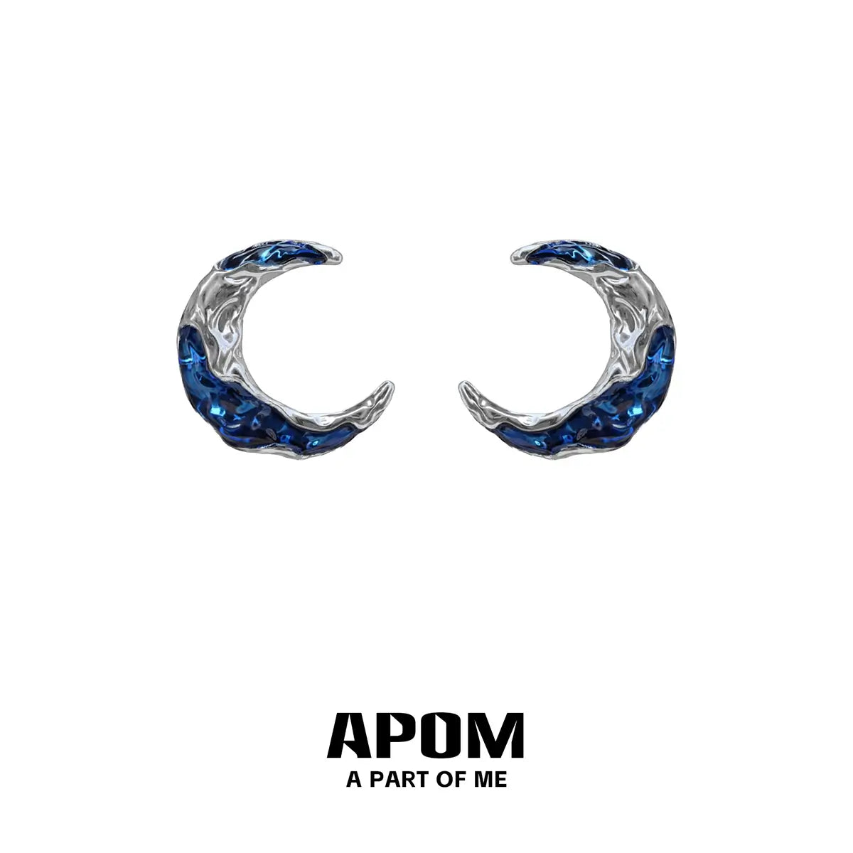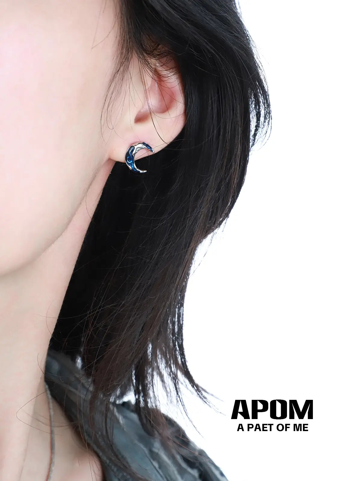 인디고 커브 S925 18k 플래티넘 도금 다크 블루 문 스터드 귀걸이™