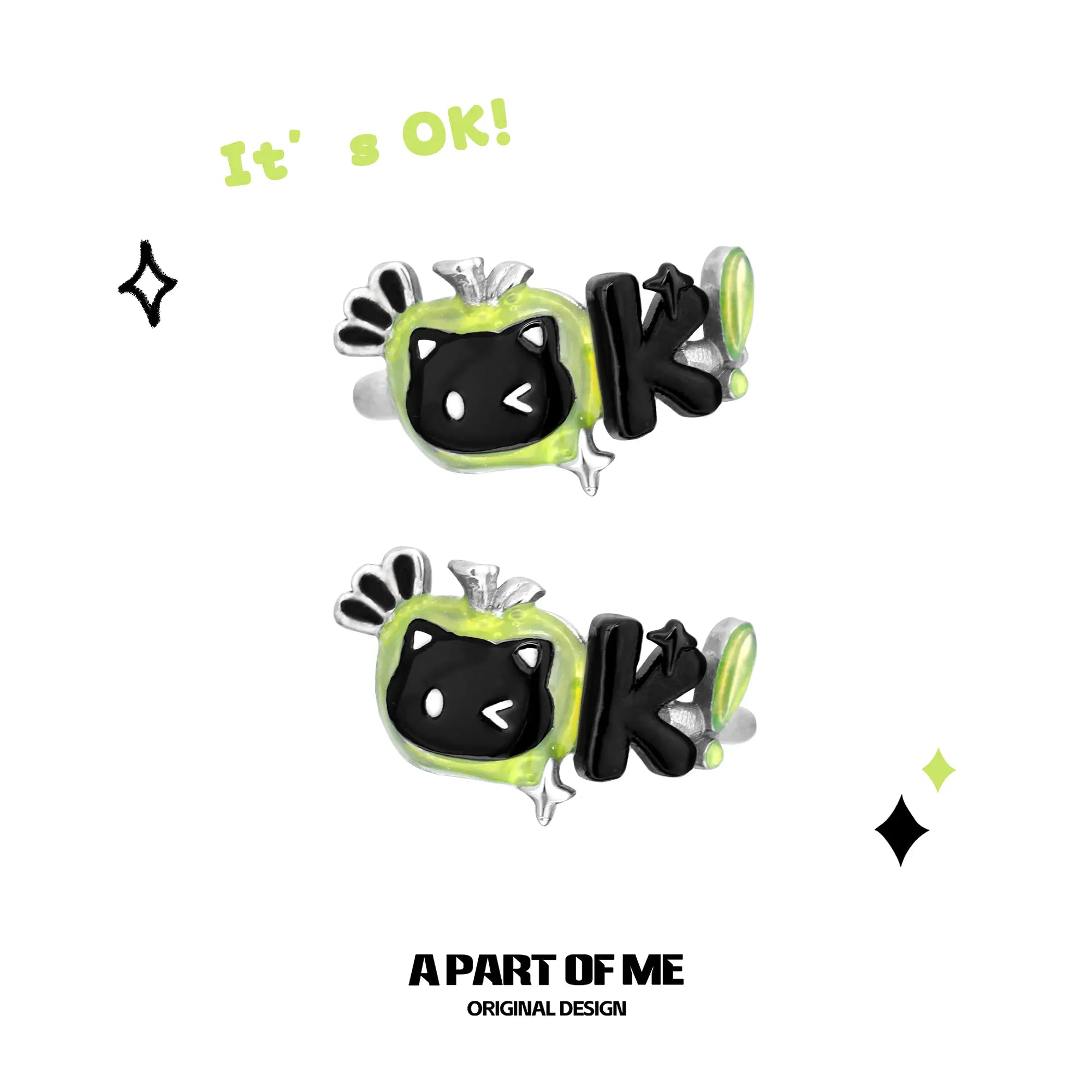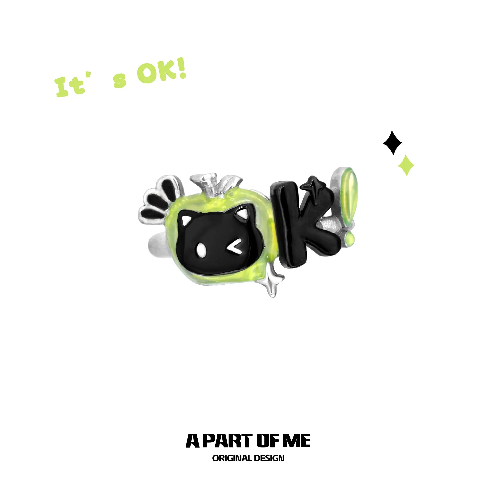 Summer Fruity Apple Cat 컬렉션의 일부인 이 제품은 "Everything is OK"라는 슬로건으로 재치 넘치는 분위기를 자아냅니다. 귀에서 살짝 엿보이는 대담한 검은 고양이는 장난기와 안정감을 동시에 선사합니다. 캐주얼한 만남이나 특별한 행사에 참석할 때, 이 커프는 당신의 룩에 개성을 더해줍니다.
