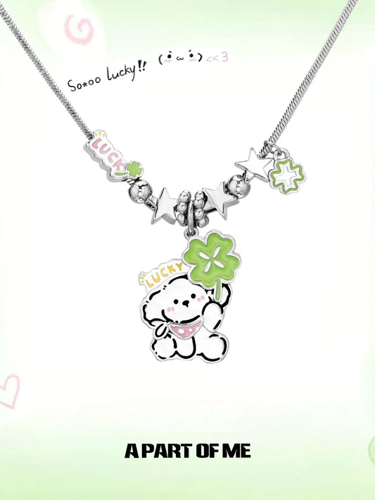 럭키 클로버 18K 플래티넘 도금 새끼 고양이 & 강아지 초커 목걸이™