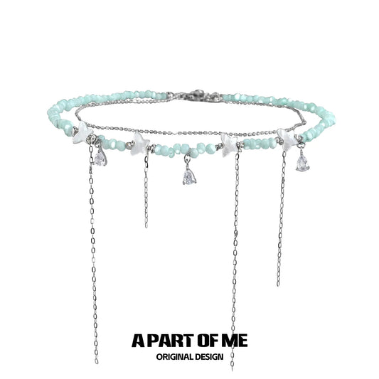 민트 라군 18K 플래티넘 도금 비즈 버터플라이 펜던트 초커 목걸이™