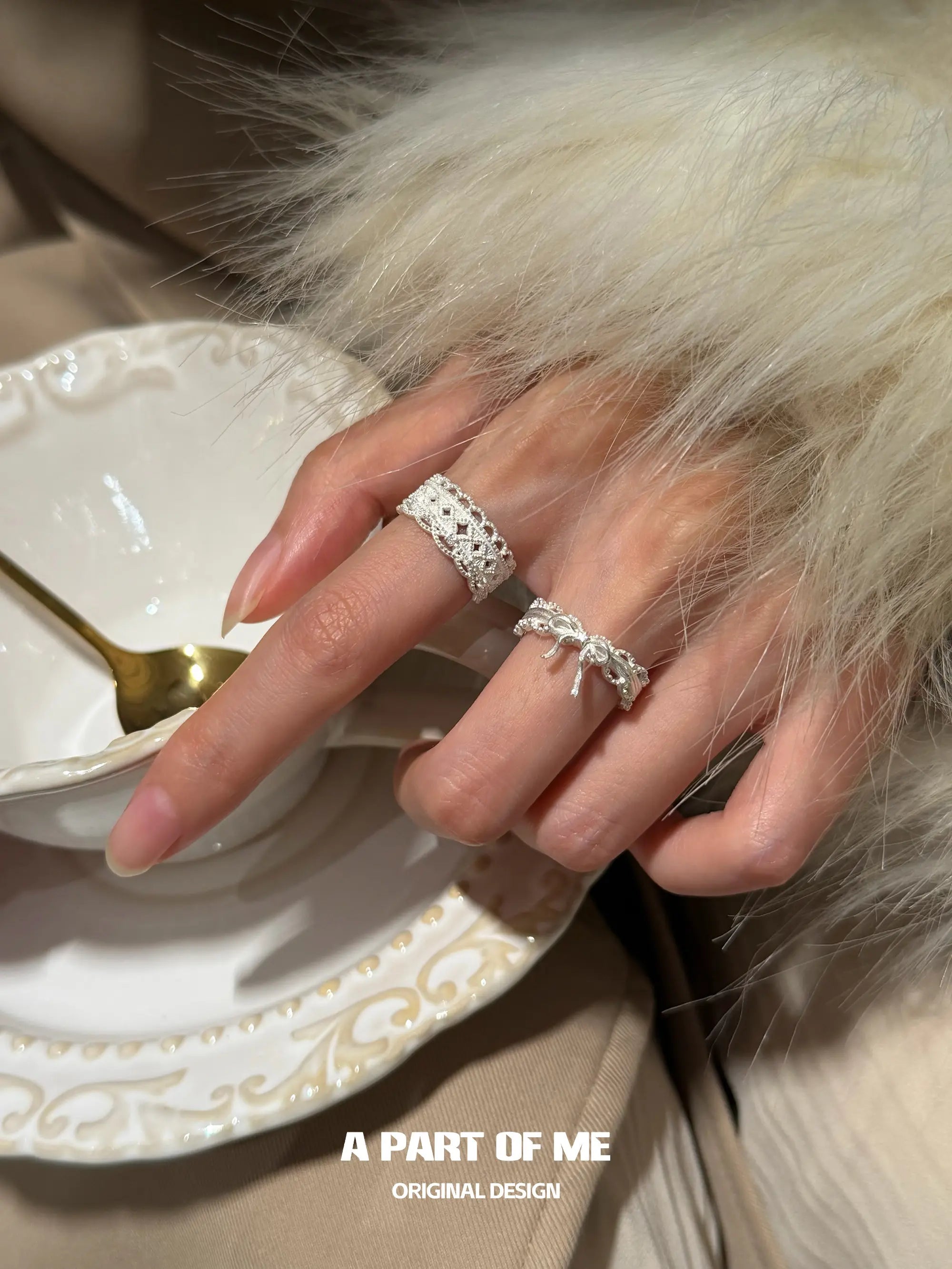 Rebellious Tenderness 925 Sterling Silver Luxury Vintage Lace Bow-Front Adjustable Ring™