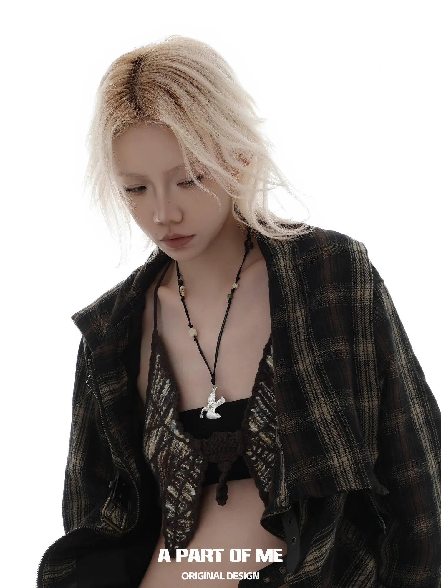 This necklace features a handwoven braided cord as its base, paired with high-quality brass metal accents finished with platinum plating. Sparkling zircon stones add a touch of elegance, while the smooth surface ensures both durability and a refined look.