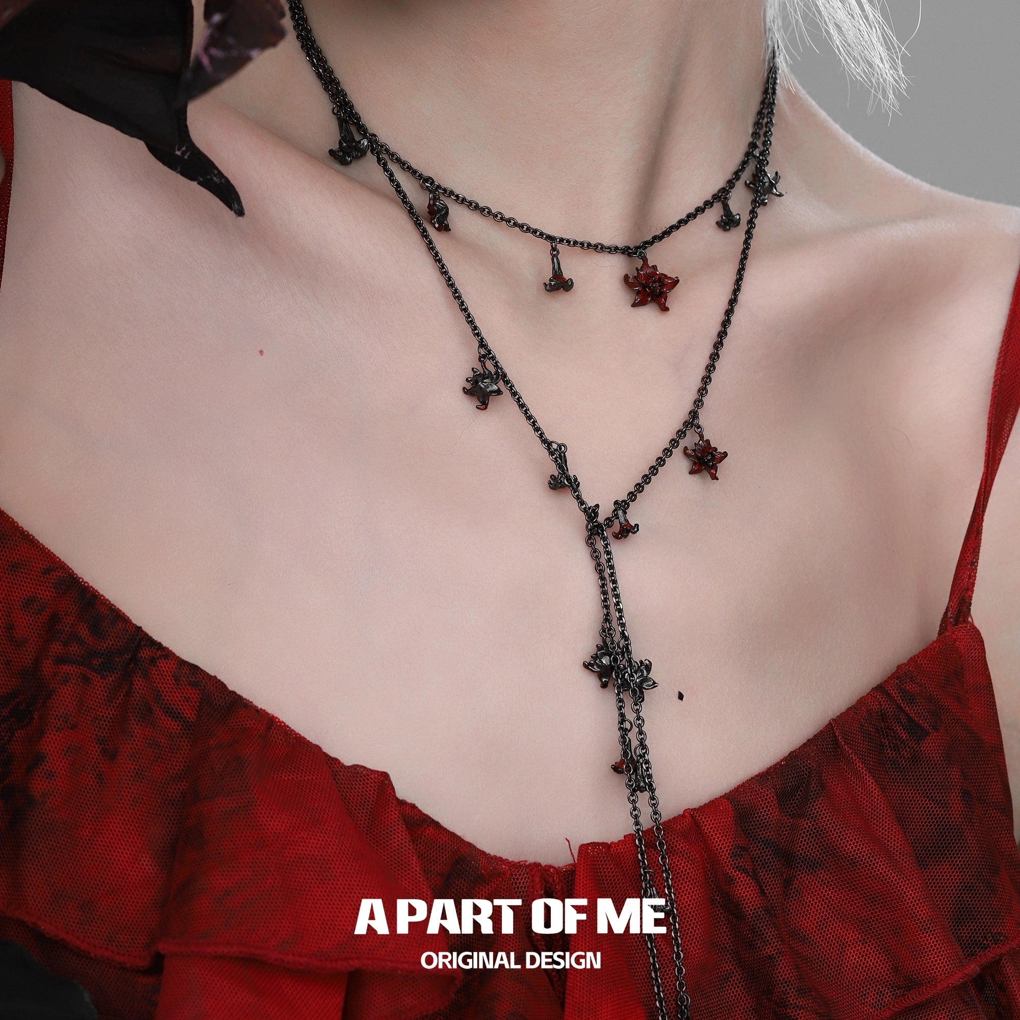 • 참신한 디자인 : "블러디 다투라" 테마가 디자인에 완벽하게 녹아들어 있습니다. 블랙 18K 블랙 골드 도금 요소, 레드 에나멜, 그리고 지르콘 스톤의 반짝임이 시각적으로 매혹적이고 독특한 분위기를 자아냅니다. 긴 체인 디자인은 드라마틱하고 생동감 넘치는 느낌을 더하여, 특별한 날이나 일상복에 엣지를 더할 때 등 어떤 룩에도 포인트를 더할 수 있는 포인트 아이템입니다.