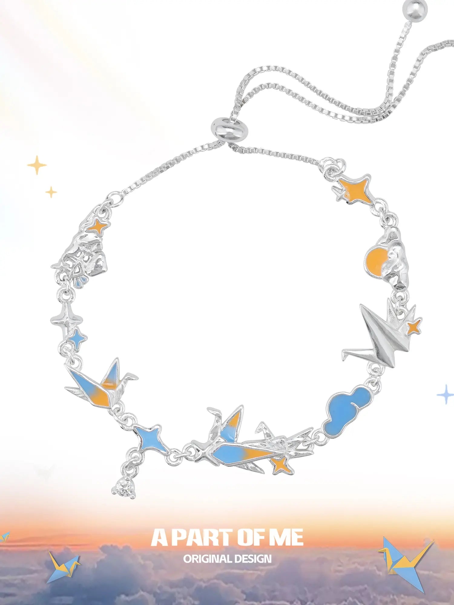 A whimsical piece from the “Corigami Era” collection, this bracelet transforms the gentle symbolism of the paper crane into wearable poetry. The multi-color detailing adds a dreamlike vibrancy, while the sliding chain creates a dynamic, airy silhouette that mirrors the crane’s lightness in flight.