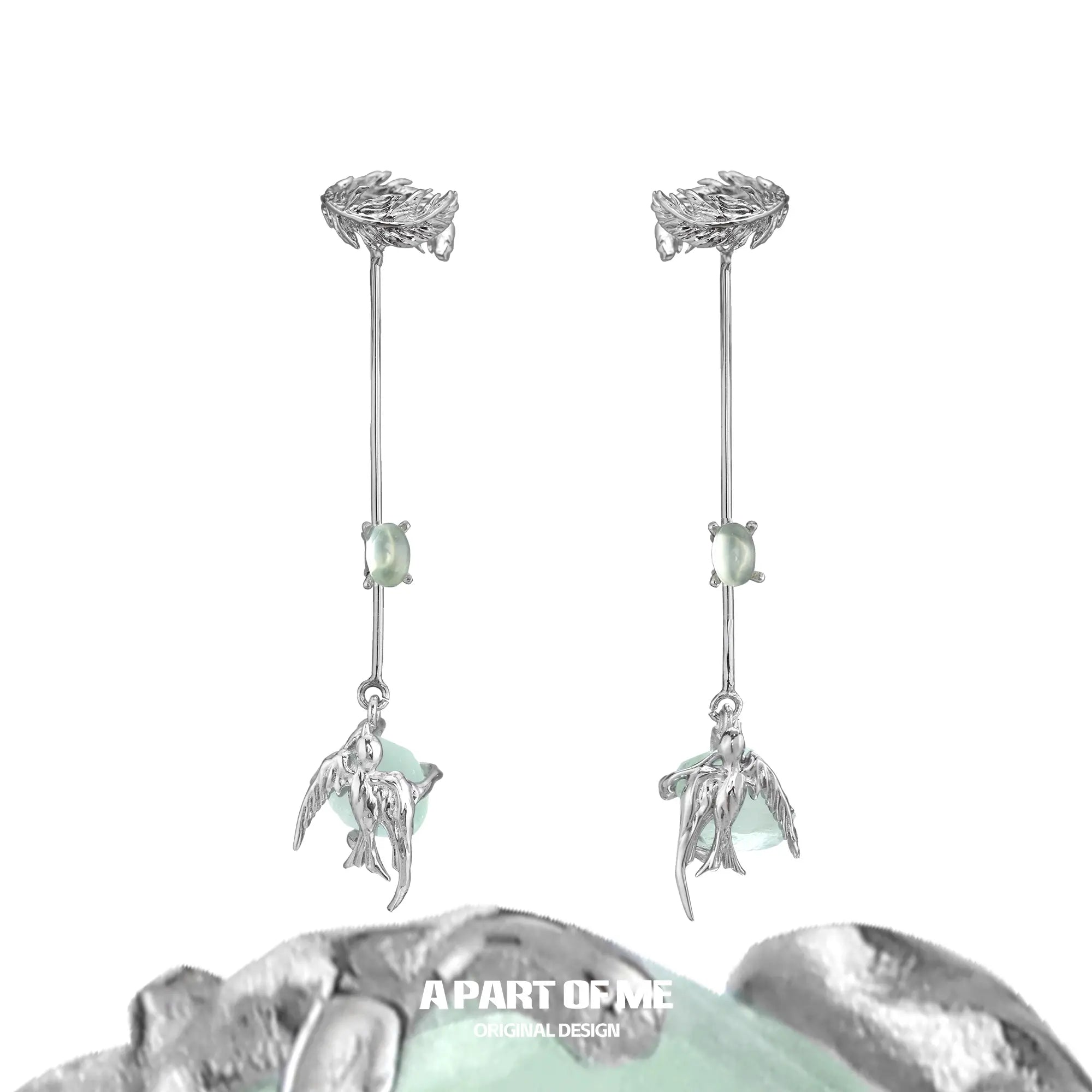 Winged Grace 18K Platinum Plating Green Fluorite Swallow Pendant Ear Clips™