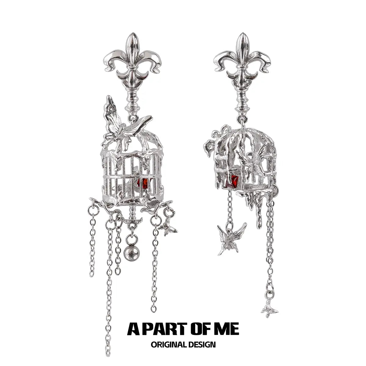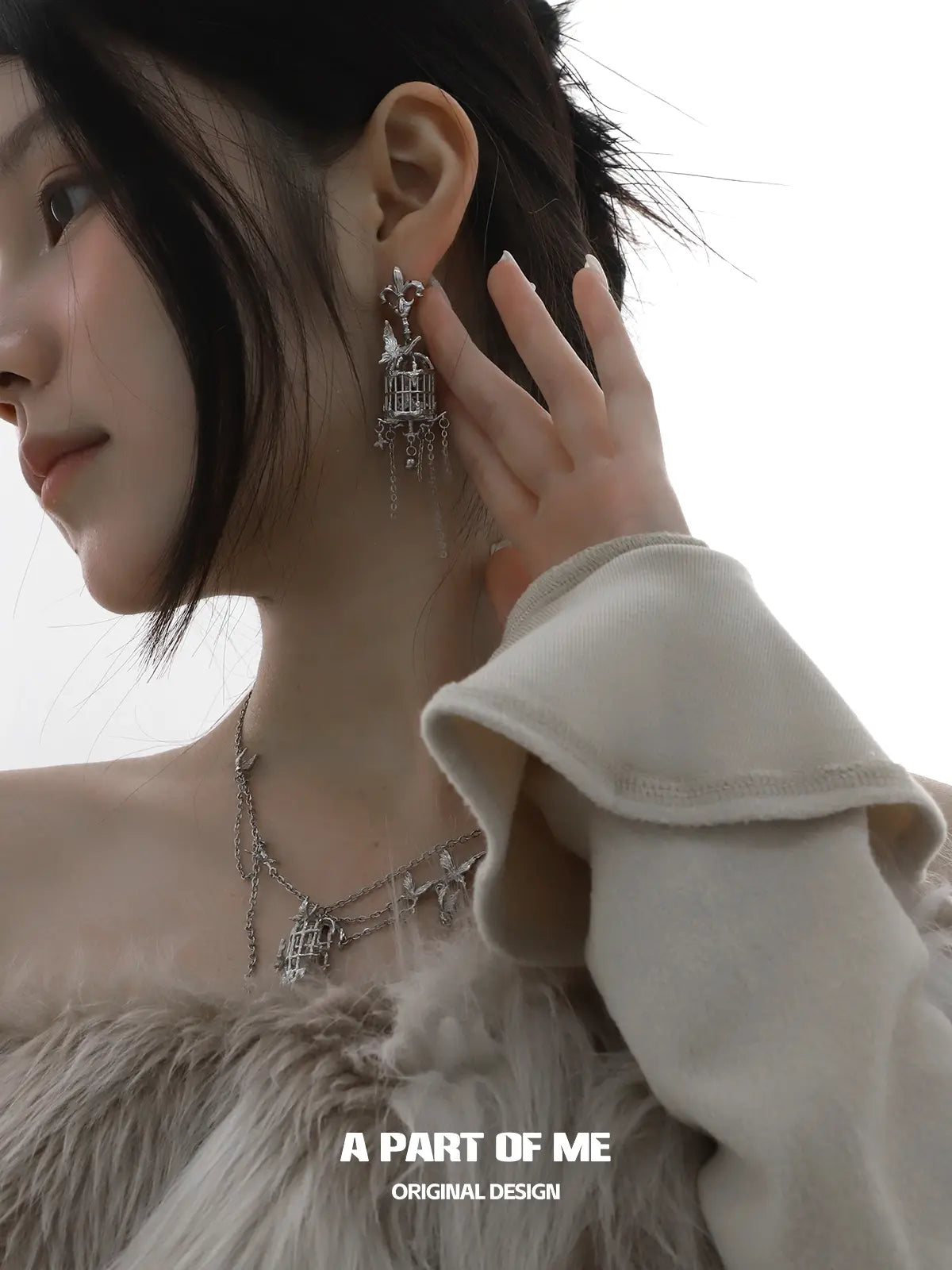 ต่างหูแบบติดพู่ประดับคริสตัล Butterfly Cage S925 ชุบแพลตตินัม 18K™