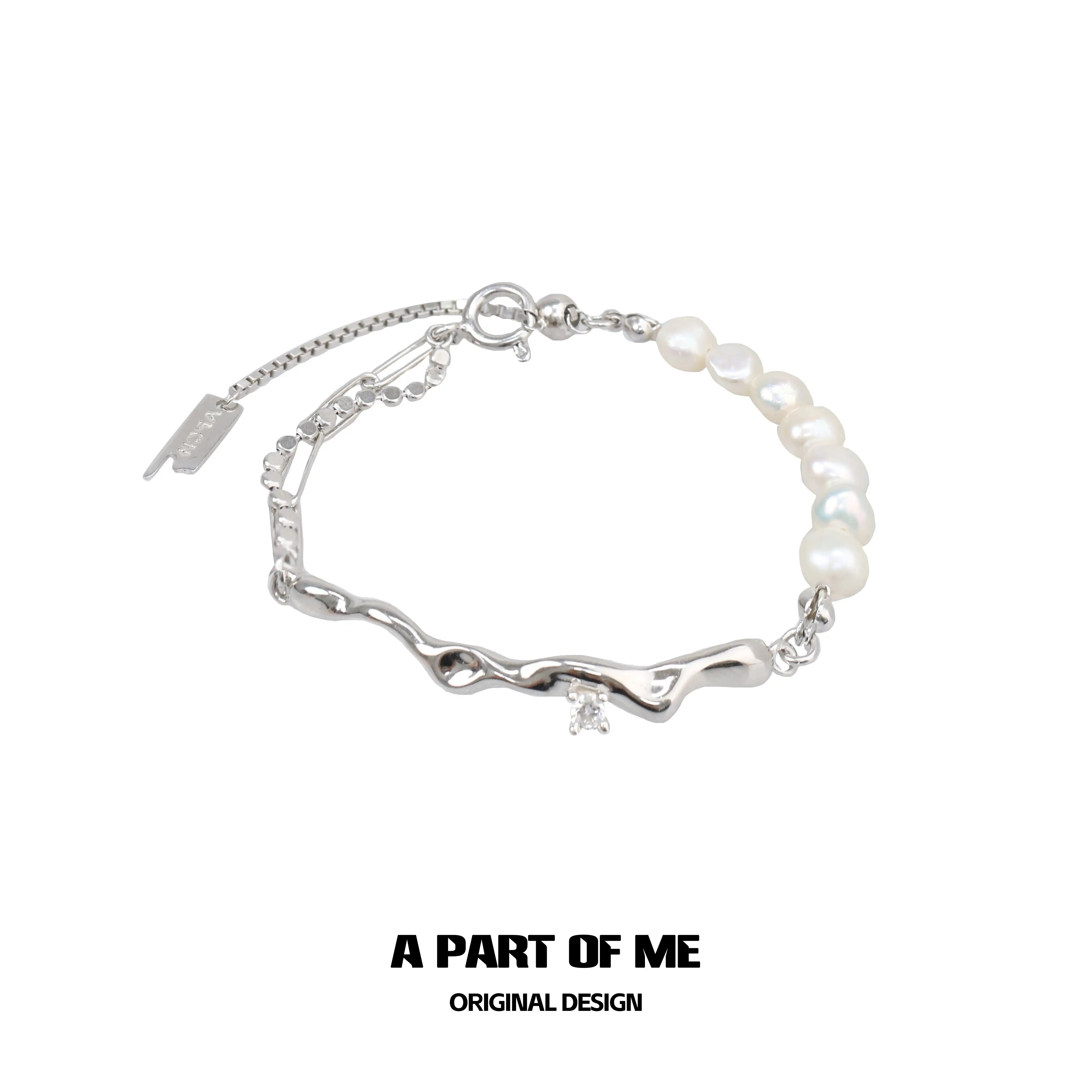 สร้อยข้อมือเส้นนี้ทำจากเงินสเตอร์ลิง S925 ทั้งหมด ให้ความทนทาน ผิวสัมผัสเรียบเนียน และสวมใส่สบาย ไข่มุกบาร็อคธรรมชาติเพิ่มความสง่างามแบบออร์แกนิก ไข่มุกแต่ละเม็ดมีรูปทรงเฉพาะตัว สร้างสรรค์ผลงานอันประณีตเหนือกาลเวลา