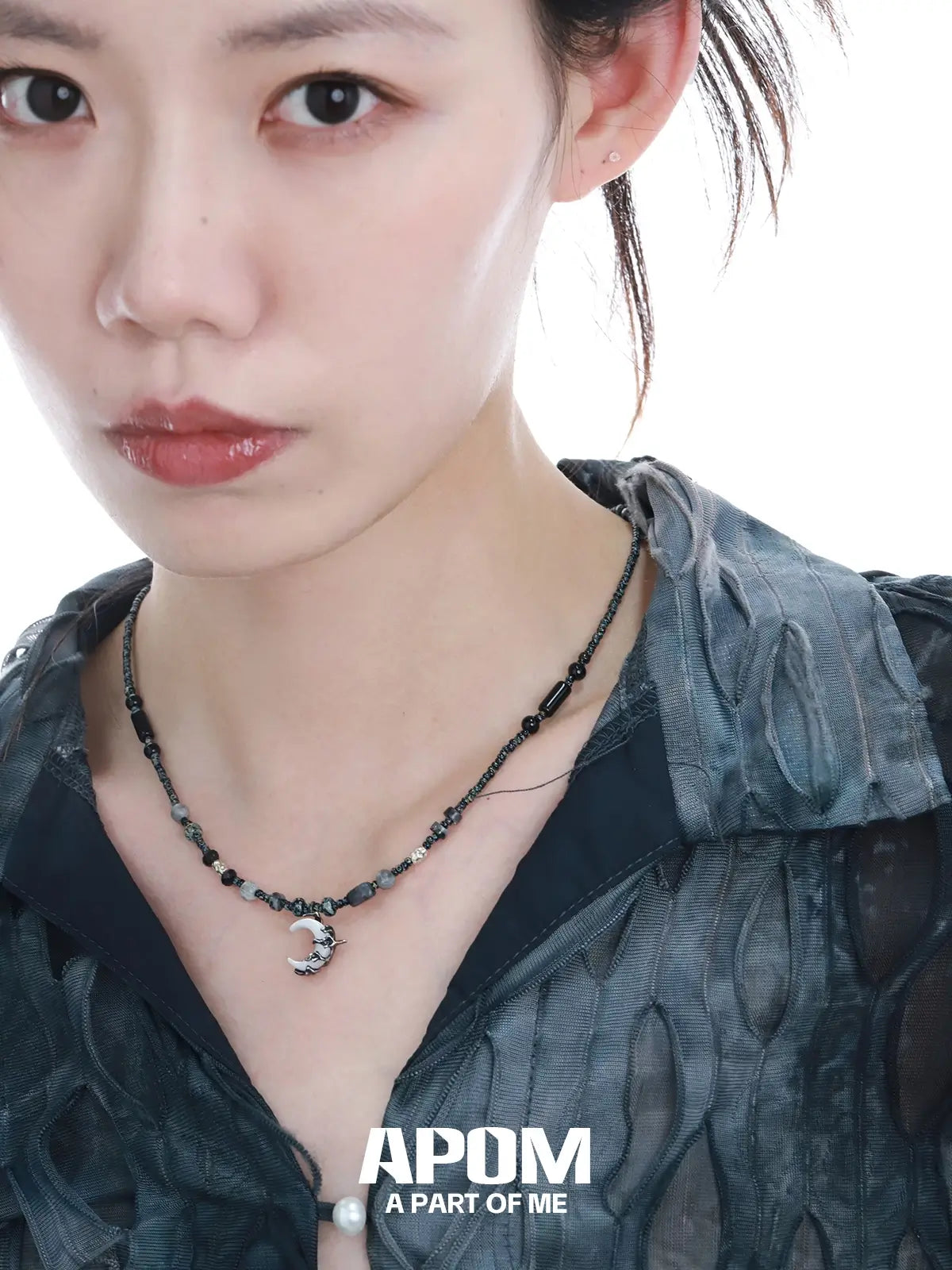 MYTH OF THE MOON สร้อยคอโชคเกอร์เปลือกหอยและหินอเกตเงินสเตอร์ลิง S925™