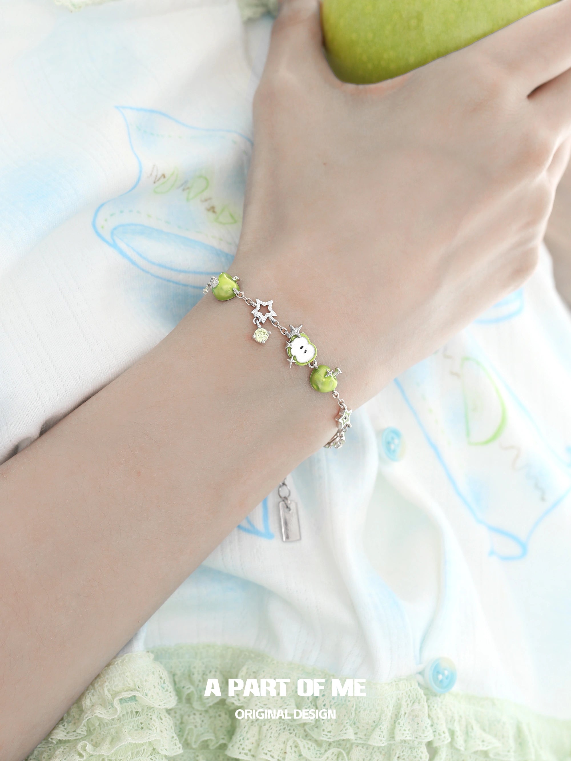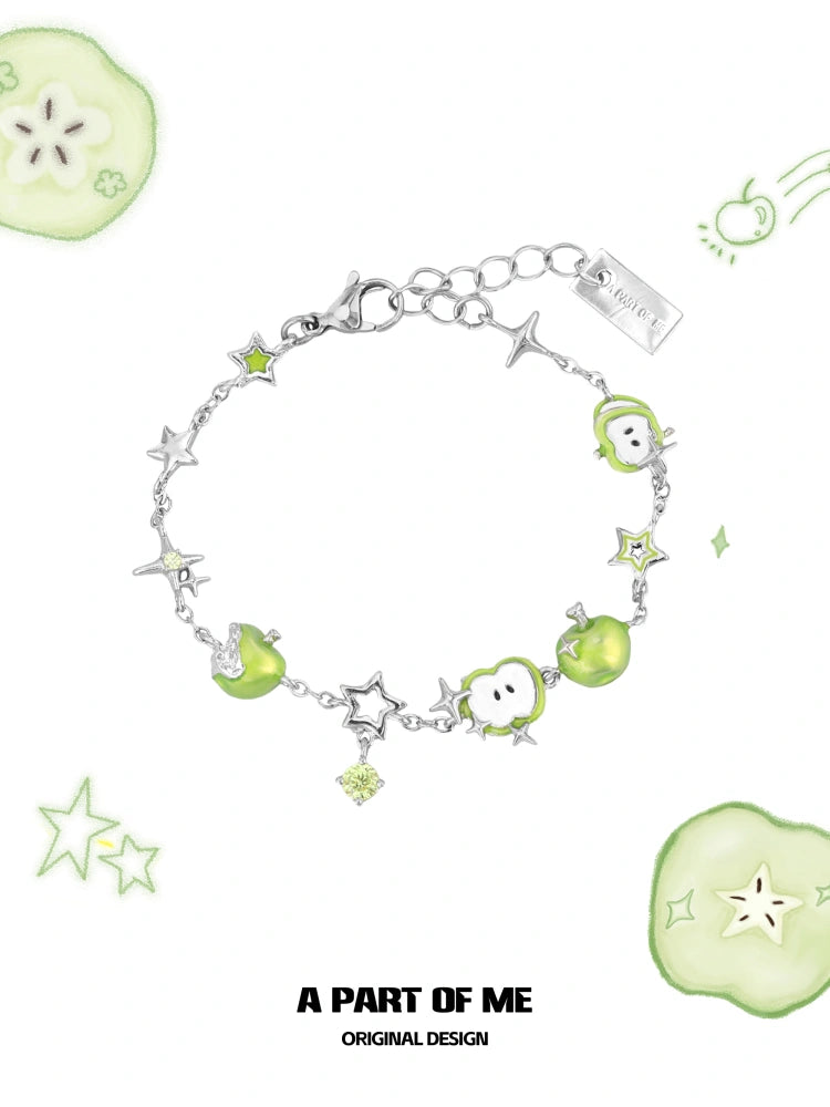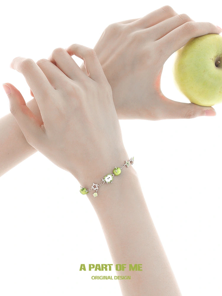 สร้อยข้อมือเส้นนี้โดดเด่นด้วยลวดลายแอปเปิ้ลเขียวสดใส ช่วยเพิ่มความสนุกสนานและสดชื่นให้กับลุคของคุณ โครงสร้างเรียบง่ายและรายละเอียดเคลือบเงาคล้ายเคลือบเงา ทำให้เป็นสร้อยข้อมือที่เหมาะสำหรับการสวมใส่ในชีวิตประจำวัน เหมาะสำหรับผู้ที่ชื่นชอบสีสันที่สดใสและกลิ่นผลไม้