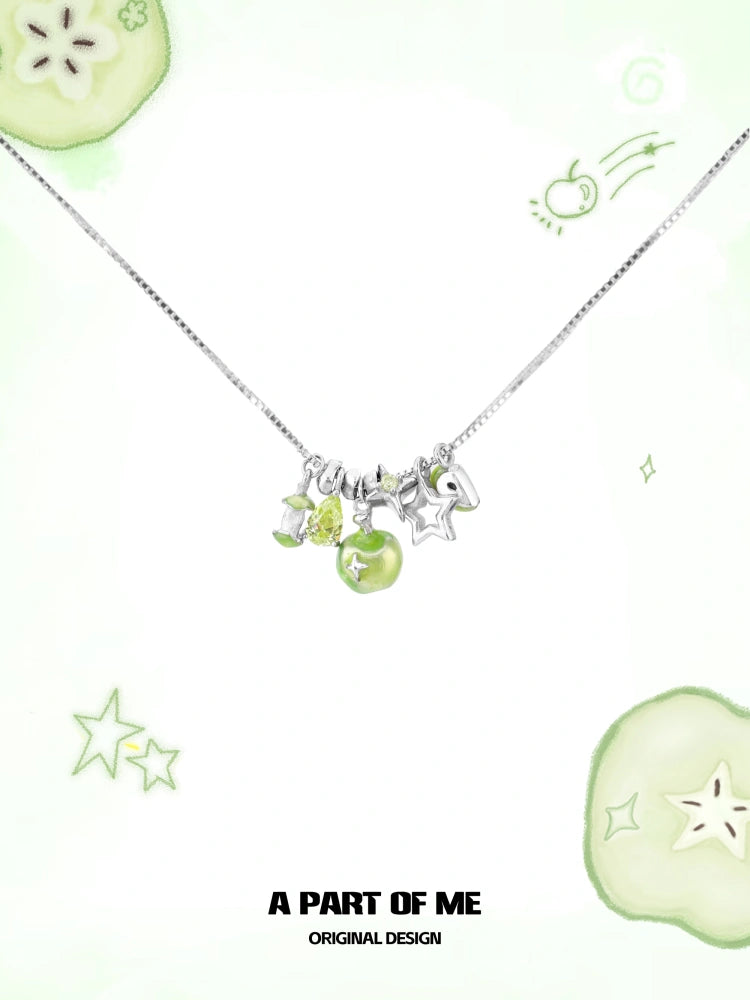 สร้อยคอแอปเปิ้ลเขียวเคลือบแพลตตินัม 18K เงินสเตอร์ลิง 925 สไตล์ Summer Fruity™