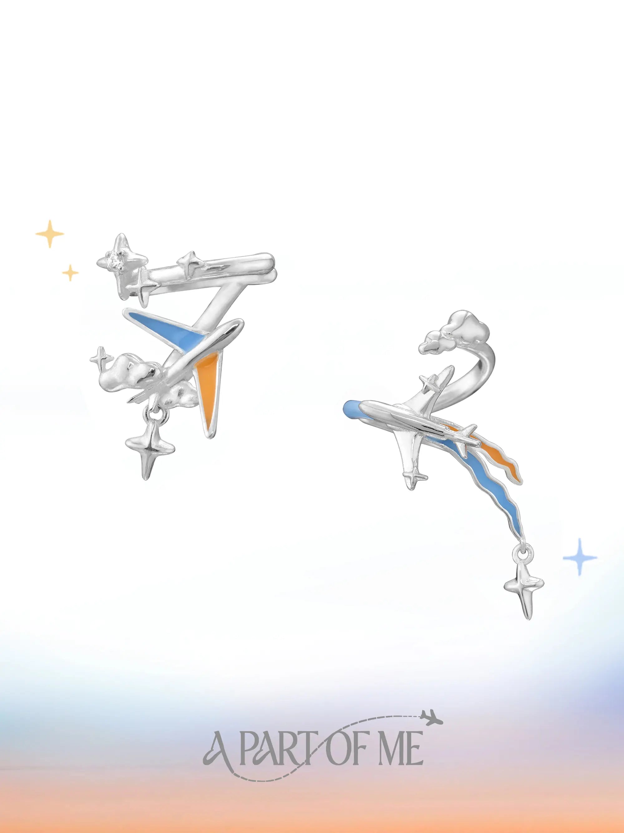 Part of the futuristic “Terminator Route Rush To You” series, these asymmetrical ear cuffs evoke a sense of speed and rebellion. The bold, irregular shapes and vibrant resin accents resemble abstract road signs or flashes of digital static—perfect for those who walk their own path with a punk-inspired edge.